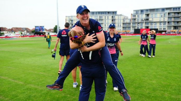 England har vunnet begge kvinne-VM-ene som er arrangert på hjemmebane, og får sjansen til å gjøre det til et hat trick på søndag på Lord's etter en dramatisk seier med to wickets over Sør-Afrika i den siste overen av semifinalen i Bristol.